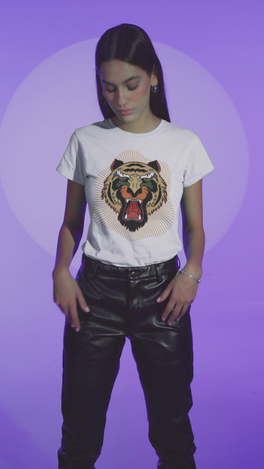 HYD T-Shirt Tsf Tiger Gold, White Manga Corta, T-Shirt Mujer Cuello Redondo Manga Corta , Diseño Animal Print 120Grs/M2, 100% Organic Cotton