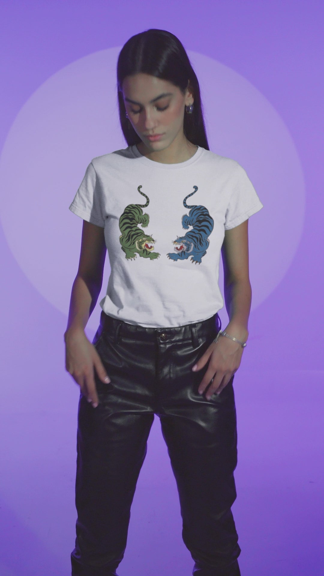 HYD T-Shirt Tsf Tiger TWo, White Manga Corta, T-Shirt Mujer Cuello Redondo Manga Corta , Diseño Animal Print 120Grs/M2, 100% Organic Cotton