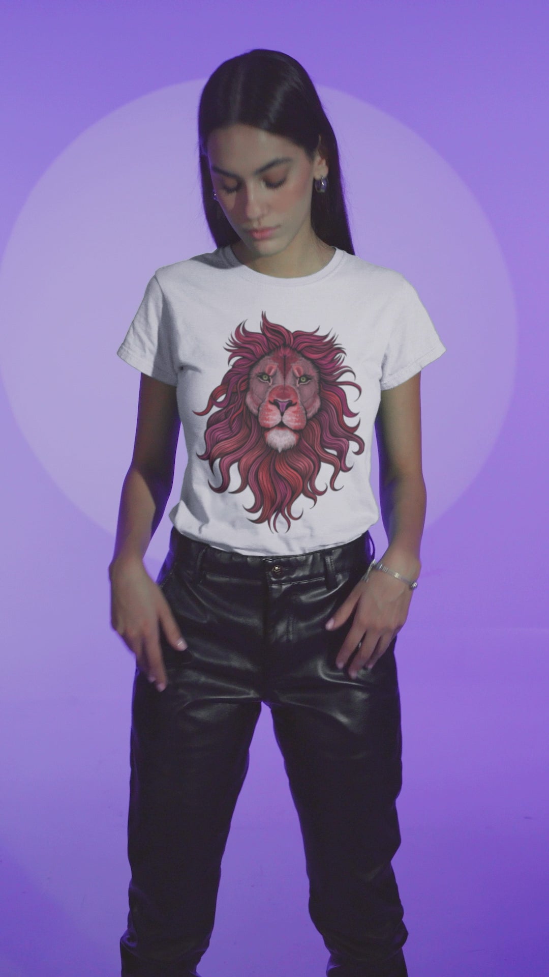 HYD T-Shirt Tsf Lion, White Manga Corta, T-Shirt Mujer Cuello Redondo Manga Corta , Diseño Animal Print 120Grs/M2, 100% Organic Cotton