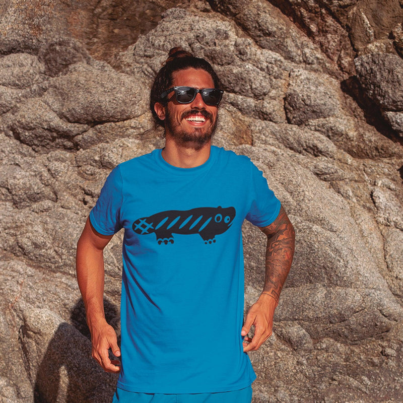 AMARA-A BS01 - T Shirt Ajolote grande BLACK - ROYAL BLUE