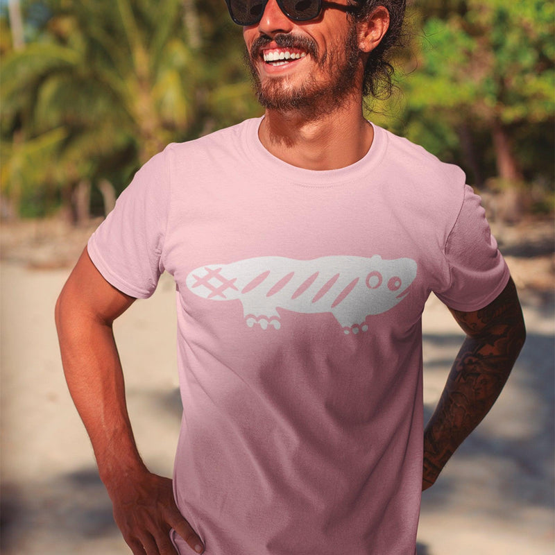 AMARA-A BS01 - T Shirt Ajolote grande WHITE - PINK COTTON
