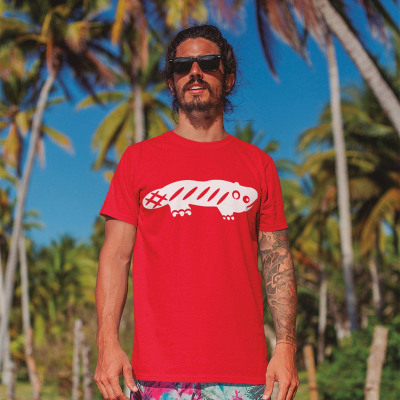 AMARA-A BS01 - T Shirt Ajolote grande WHITE - RED