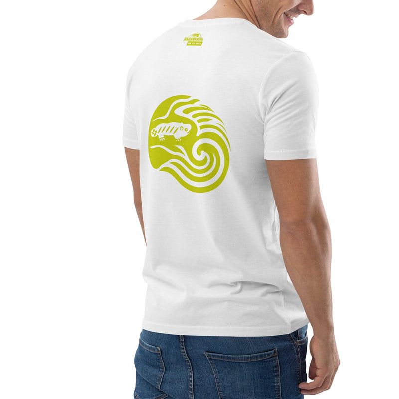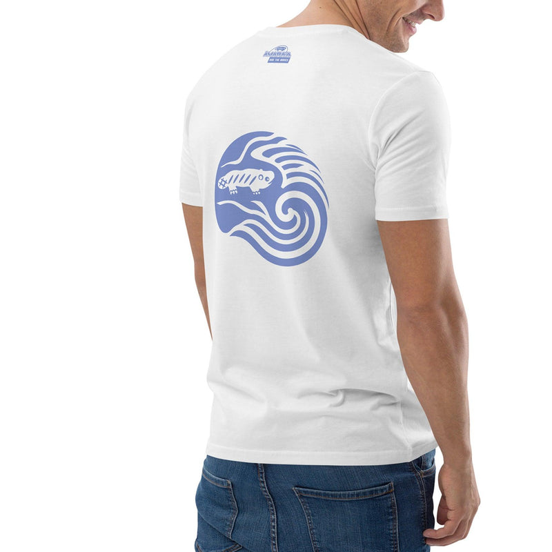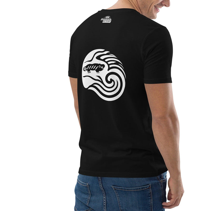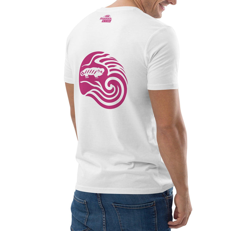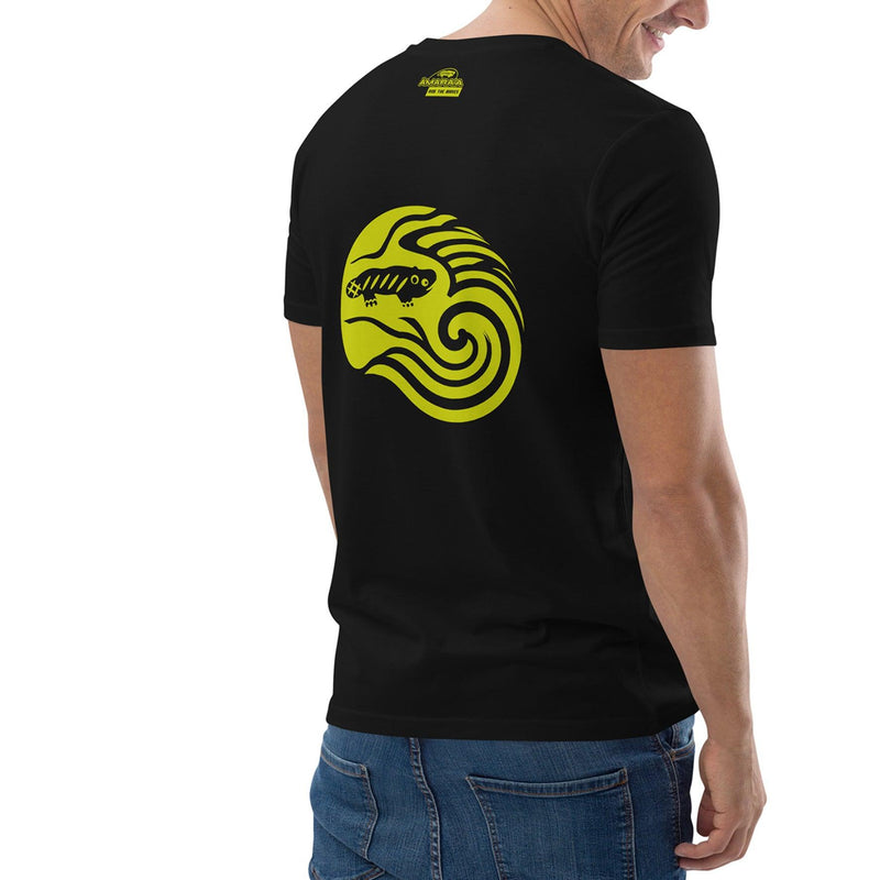 ĀMARA’A T shirt Ola Ajolote Back DTF-Base 4 colores-7 tallas 100% algodón orgánico, 150 g/m2, Sin Costuras, Manga pegada, Corte normal, Cuello de canalé 1x1, Bies interior de tejido principal en el cuello, Para los puños y bajos, puntada doble ancha, Logo DTF