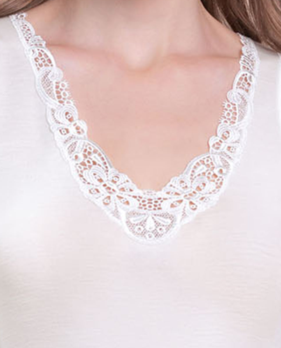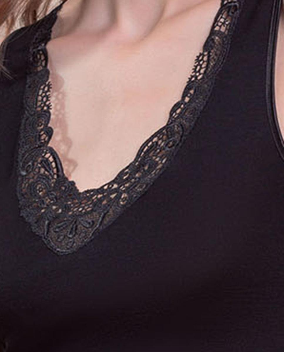 VITTORIA B. VC145A Camiseta Interior Lana Y Seda Camiseta Interior De Mujer Sin Mangas Con Macramé Fantasía. Wool Silk. 85 % Lana 15 % Silk