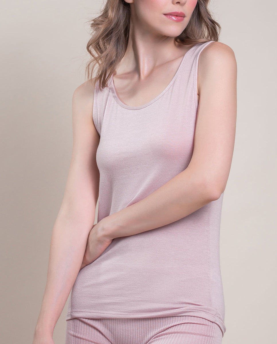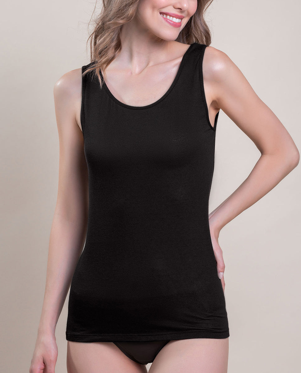 VITTORIA B. VI801 Camiseta Interior Modal, Camiseta Interior De Mujer Sin Mangas Con Escote Redondo Liso. 85 % Modal 9 % Cashmere 6 % Elastano