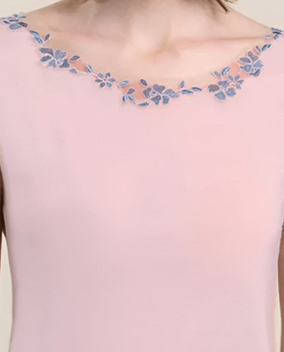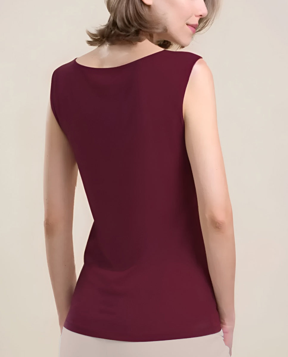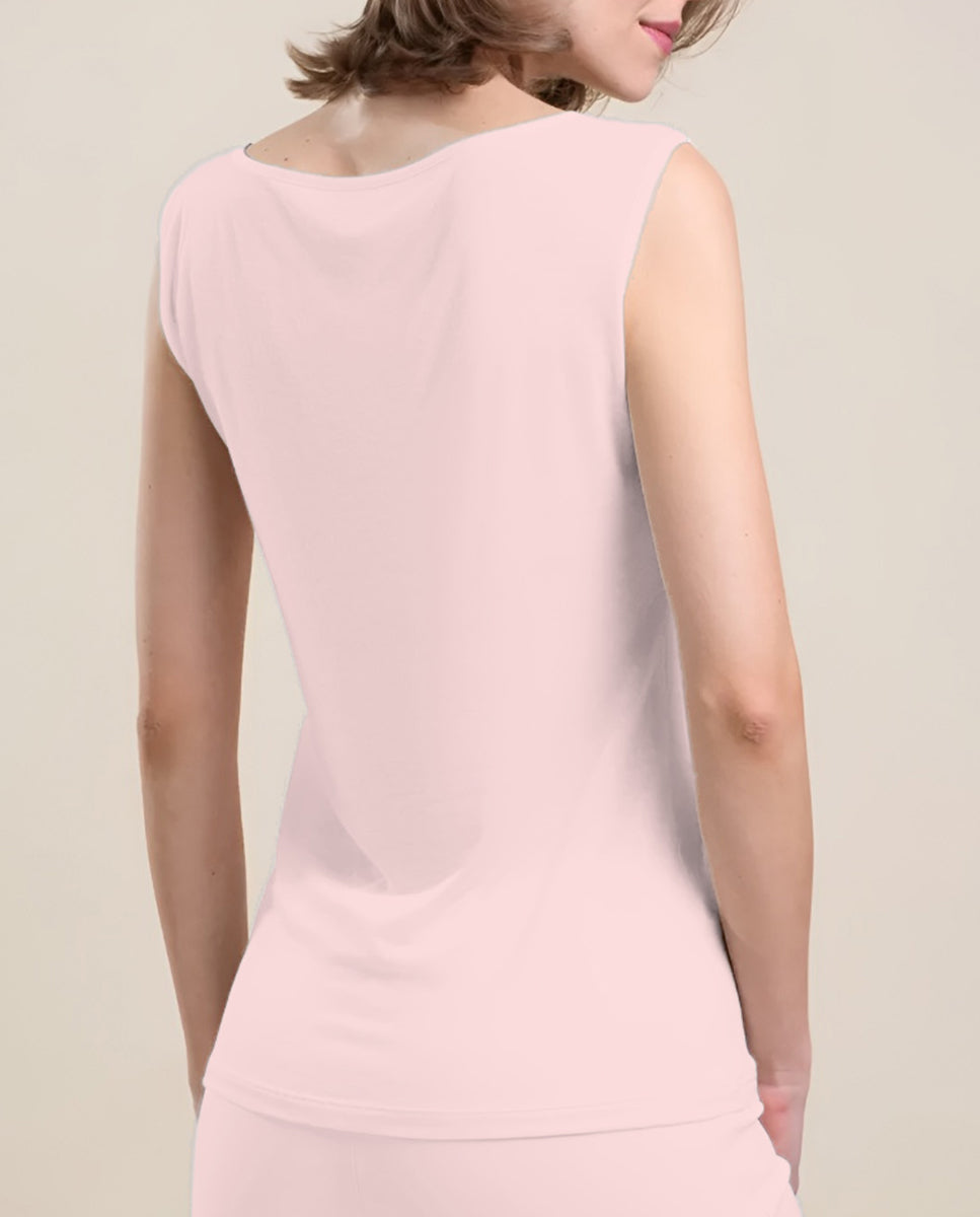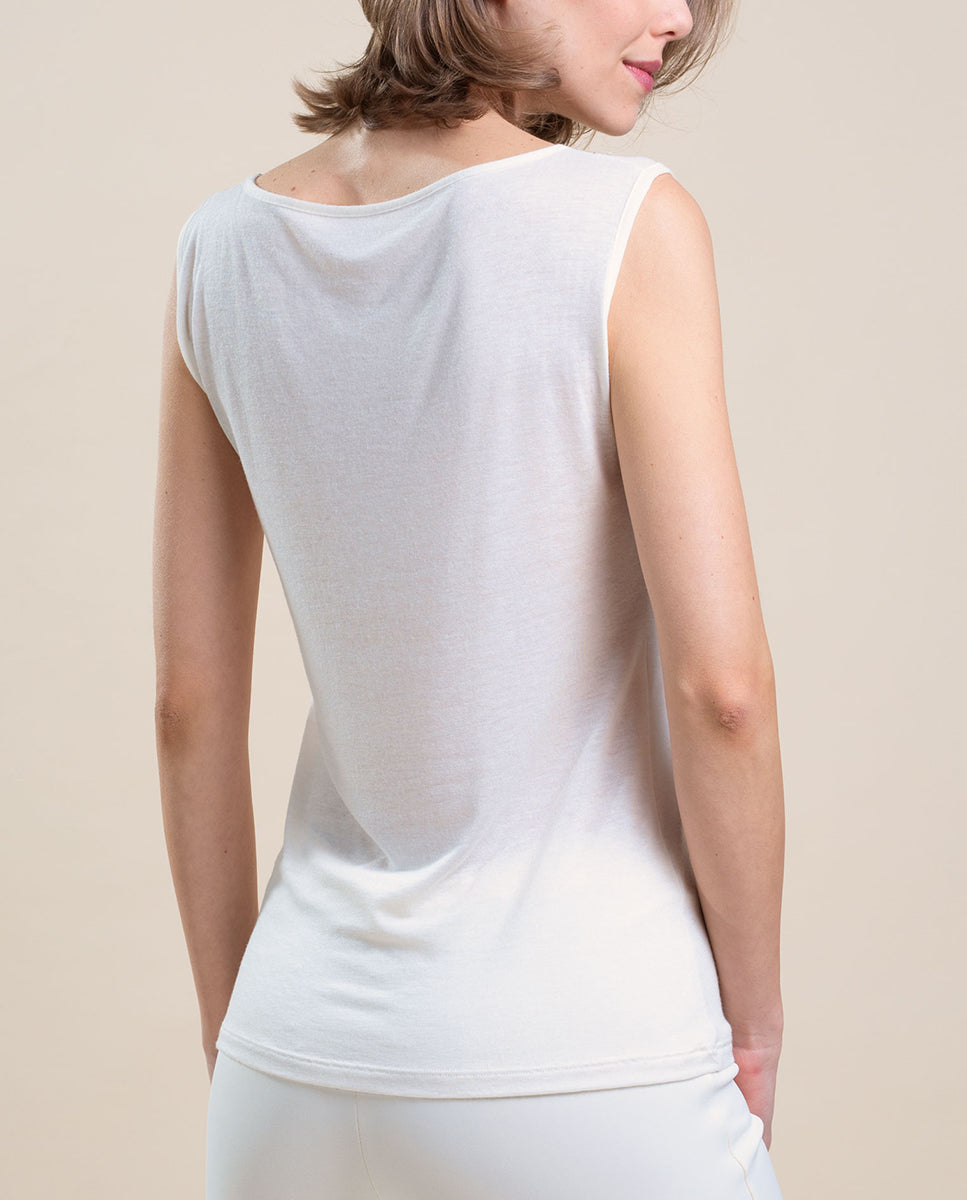 VITTORIA B. VI826 Camiseta Interior Modal, Camiseta Interior De Mujer Sin Mangas Con Tul Bordado Fantasía. 85 % Modal 9 % Cashmere 6 % Elastano