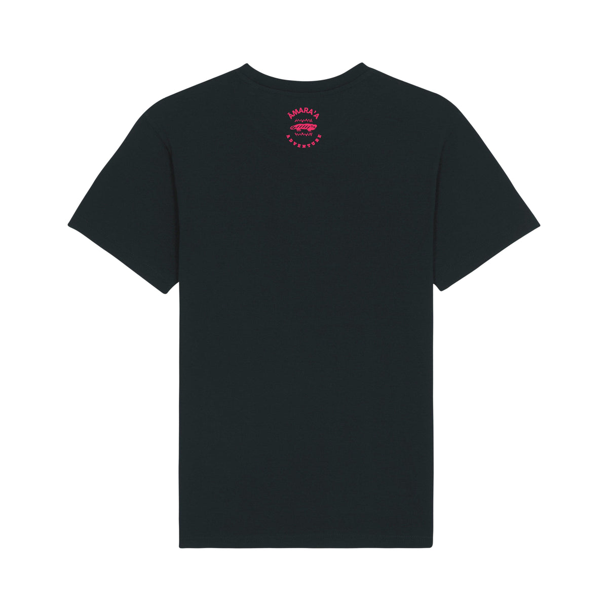 AMARA-A BA01 - T Shirt AJOLOTE ADVENTURE FUCSIA - BLACK 100% Organic Cotton, 150 g/m², Seamless, Set-in sleeve, Regular fit, 1x1 rib at neck collar, Inside back neck tape in self fabric, Wide double topstitch at cuffs and hem, DTF logo