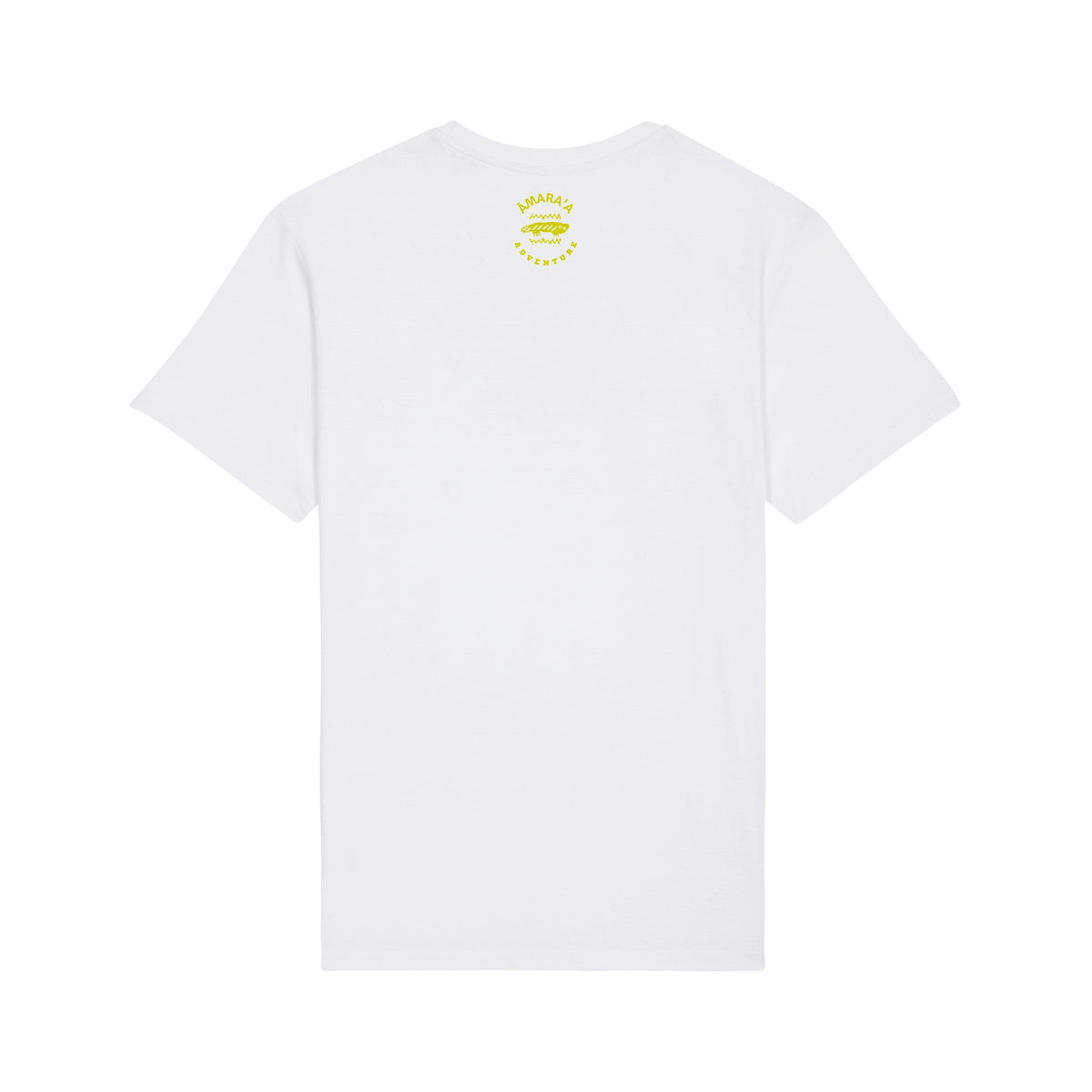 AMARA-A BA01 - T-Shirt AJOLOTE ADVENTURE GREEN - WHITE 100% Organic Cotton, 150 g/m2, Seamless, Set-in sleeve, Regular fit, 1x1 ribbed neck collar, Inner neck tape made of main fabric, Wide double stitch on cuffs and hem, DTF Logo.