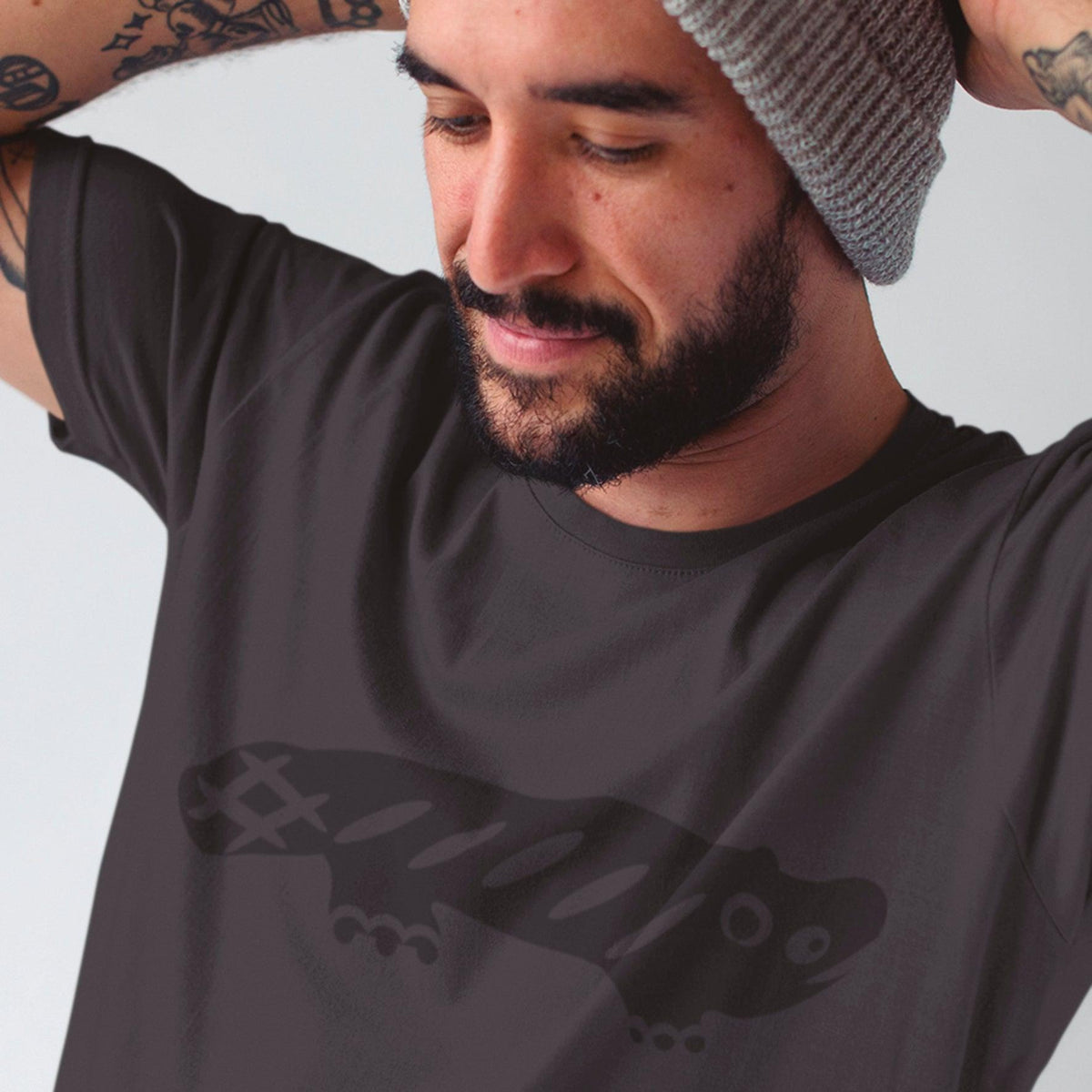 AMARA-A BS01 - T Shirt Big Ajolote BLACK - DARK GREY 100% 100% Organic Cotton, 150 g/m², Seamless, Set-in sleevess, regular fit, 1x1 ribbed collar, inner binding in main fabric at neck, wide double stitching on cuffs and hems, DTF logo