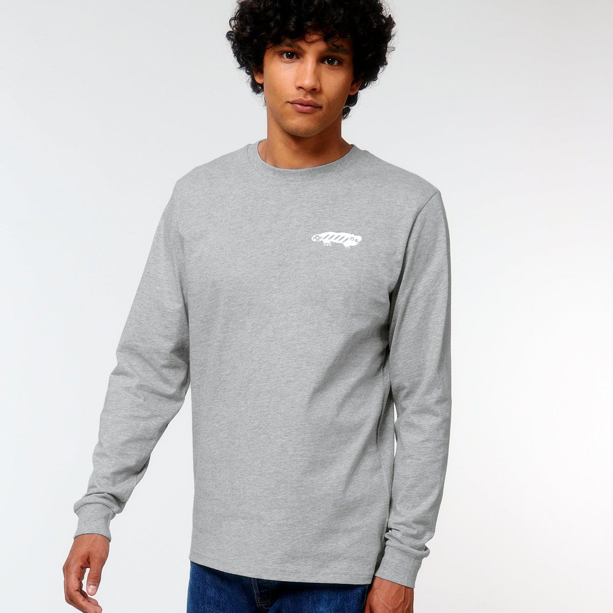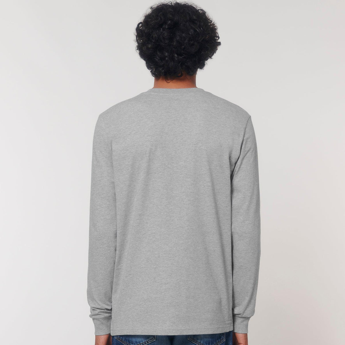 AMARA-A BS03 Shift Dry Ajolote small WHITE - HEATHER GREY 100% organic combed Cotton, 200 GSM, Single jersey knit, Dry Handfeel, Long sleeve unisex t-shirt with dry touch, 1x1 rib collar and cuffs, Internal binding in main fabric, Wide double-stitched hem, DTF logo