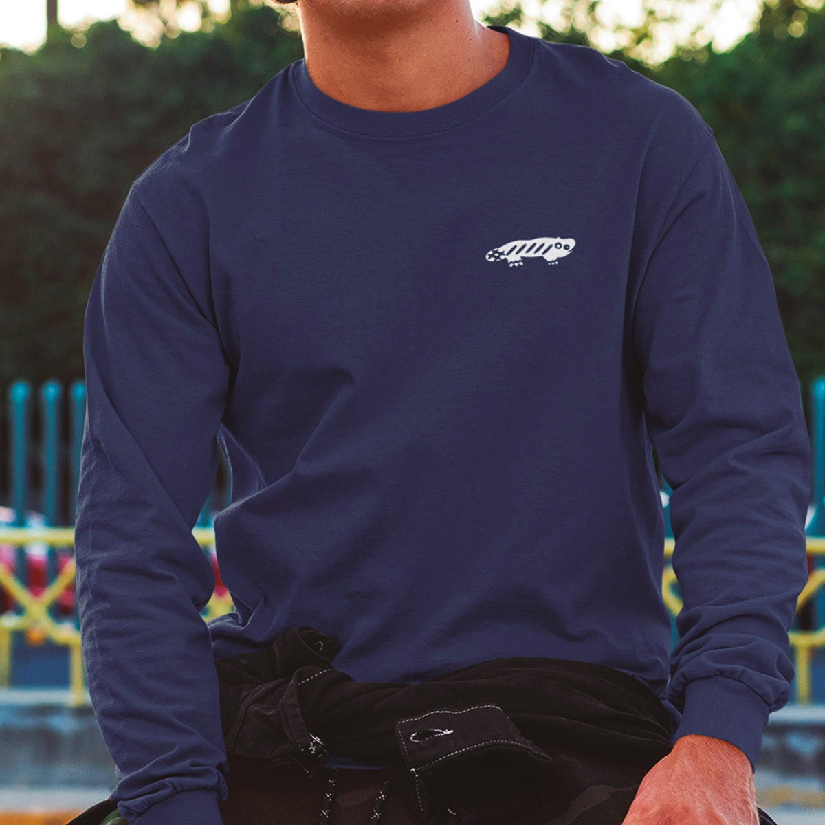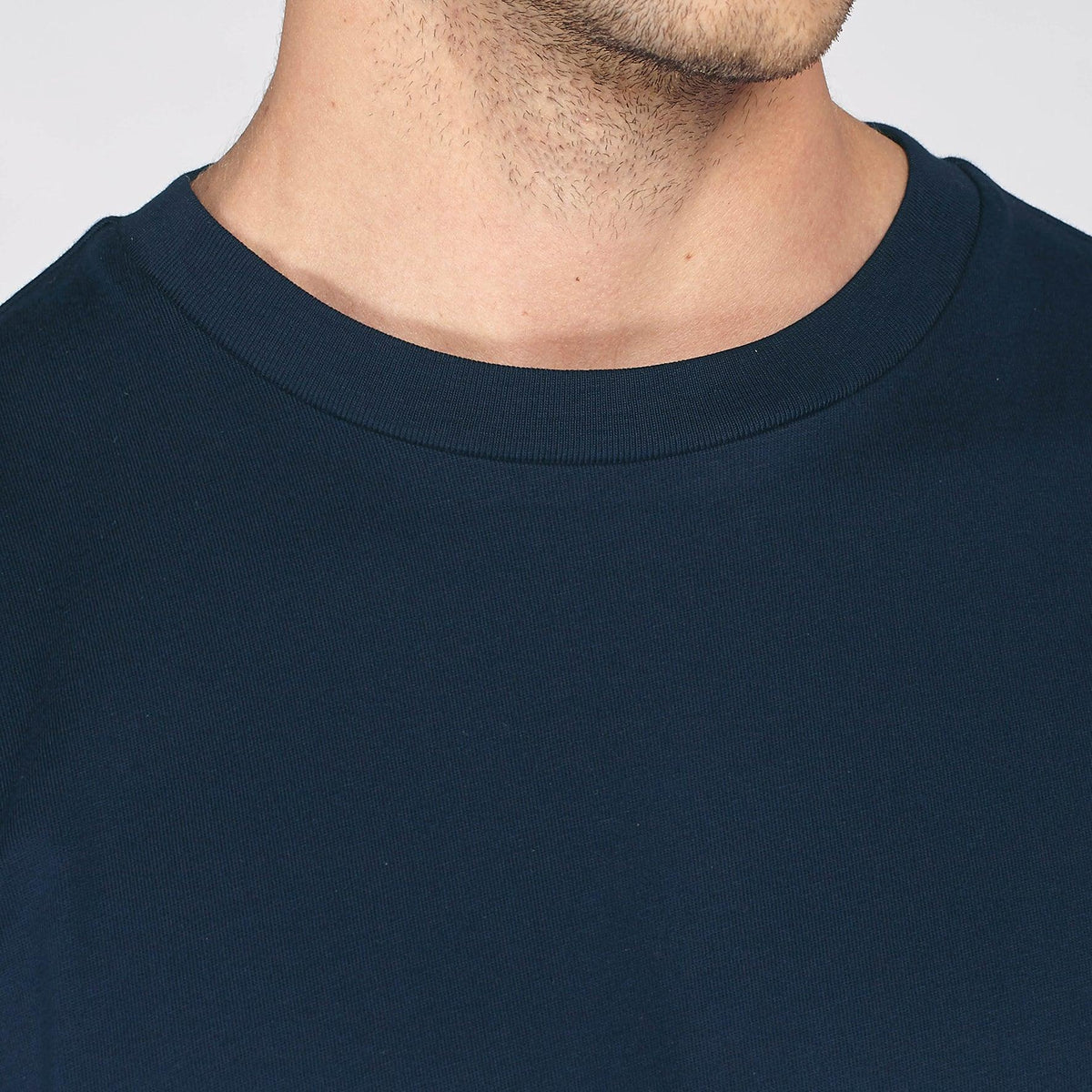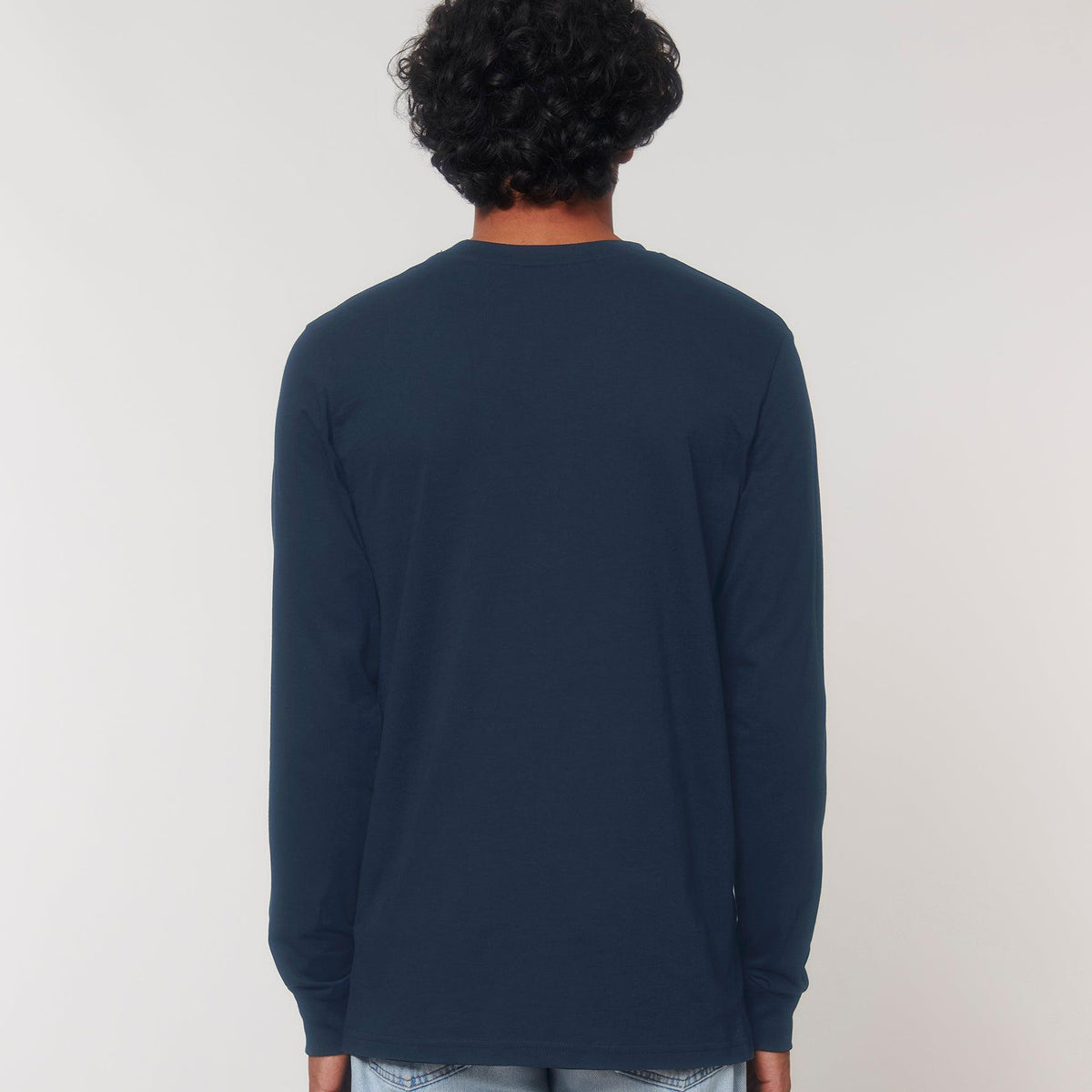 AMARA-A BS03 Shift Dry Ajolote small WHITE - NAVY 100% organic combed Cotton, 200 GSM, Single jersey knit, Dry Handfeel, Long sleeve unisex t-shirt with dry touch, 1x1 rib collar and cuffs, Internal binding in main fabric, Wide double-stitched hem, DTF logo