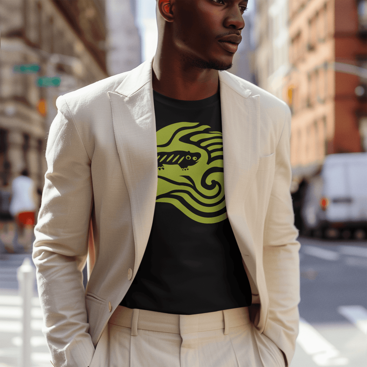 AMARA-A BS09 - T Shirt Ola Grande Front Green fluo - BLACK 100% 100% Organic Cotton, 150 g/m², Seamless, Set-in sleevess, regular fit, 1x1 ribbed collar, inner binding in main fabric at neck, wide double stitching on cuffs and hems, DTF logo