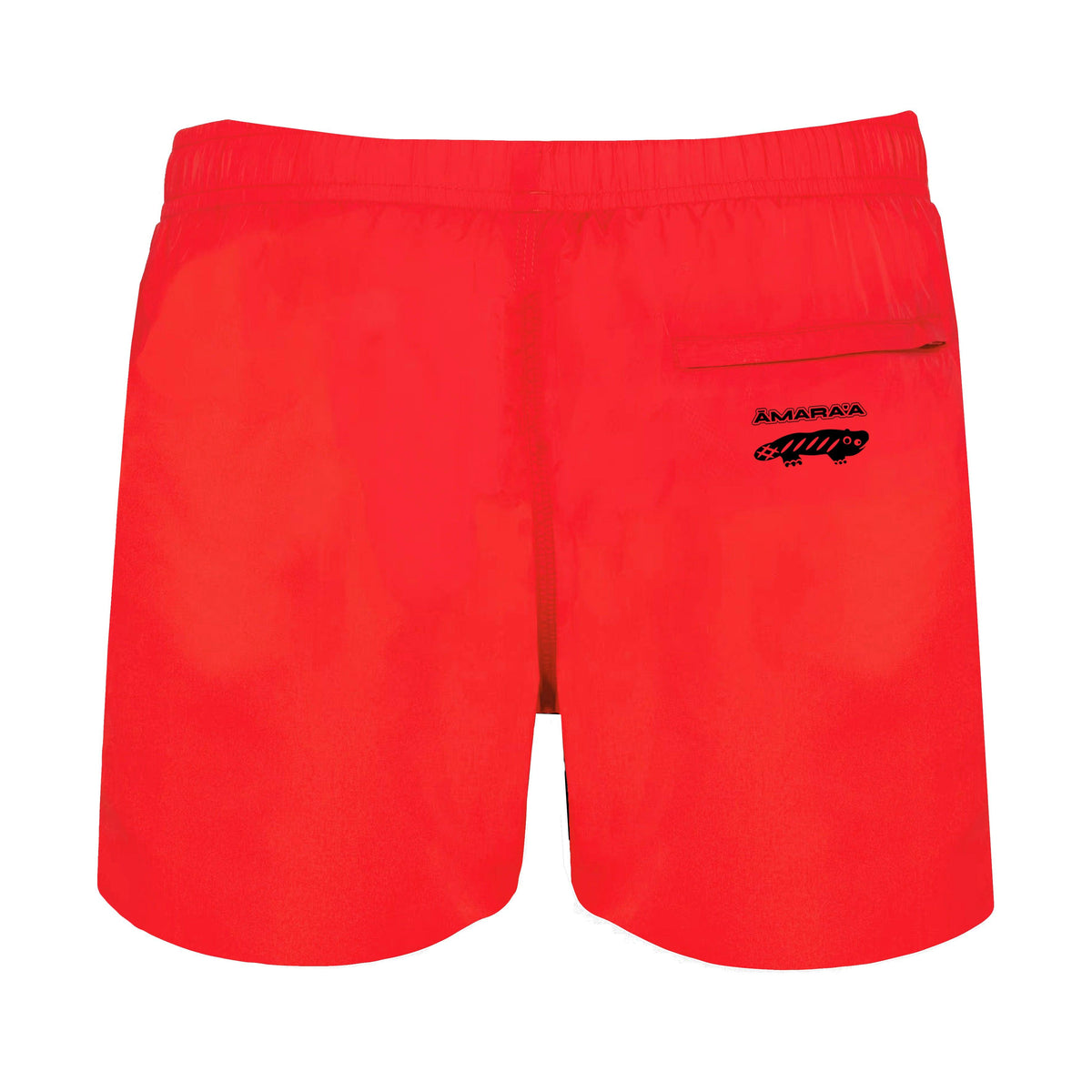 AMARA-A BS10 Mid-Length Wave Swim Trunks BLACK - RED 100% polyamide. Straight cut. 2 open side pockets with mesh lining, 60 g/m². Lightweight quick-dry fabric. Back pocket with zipper. Reinforced stitching on the pockets, inseam, hem, and waistband. DTF logo