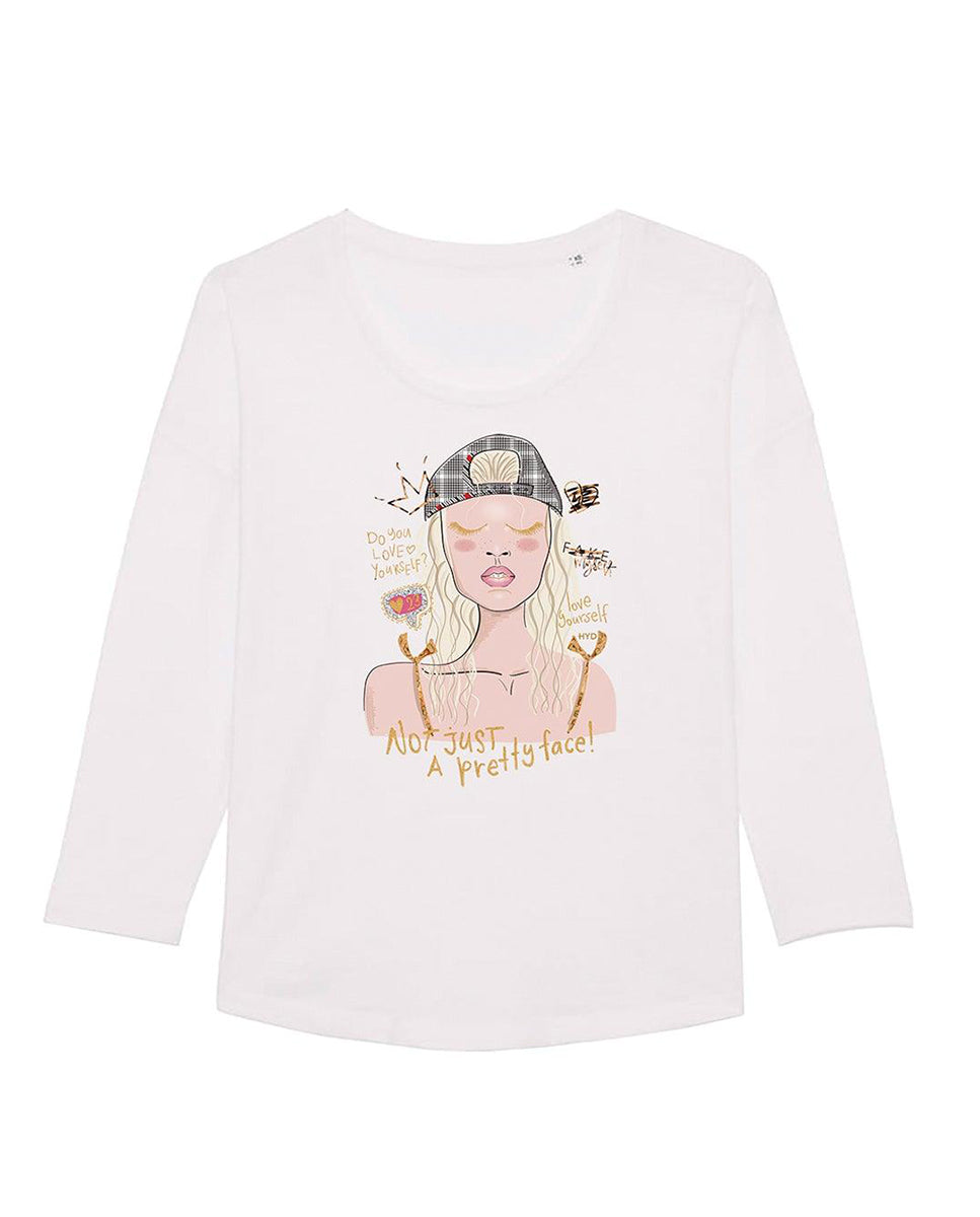 HYD T-shirt TSF Pretty W WHITE Sleeve 3/4, T-shirt, Woman, Neck round, 100% Organic Cotton, Digital Print, Design Fantasy