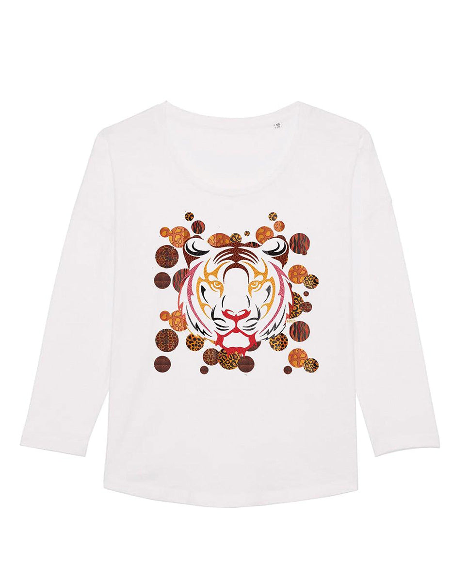 HYD T-shirt TSW Tiger WHITE Woman, Sleeve 3/4, T-shirt, Woman, Neck round, 100% Organic Cotton, Digital Print, Animal Print, 100% Organic Cotton
